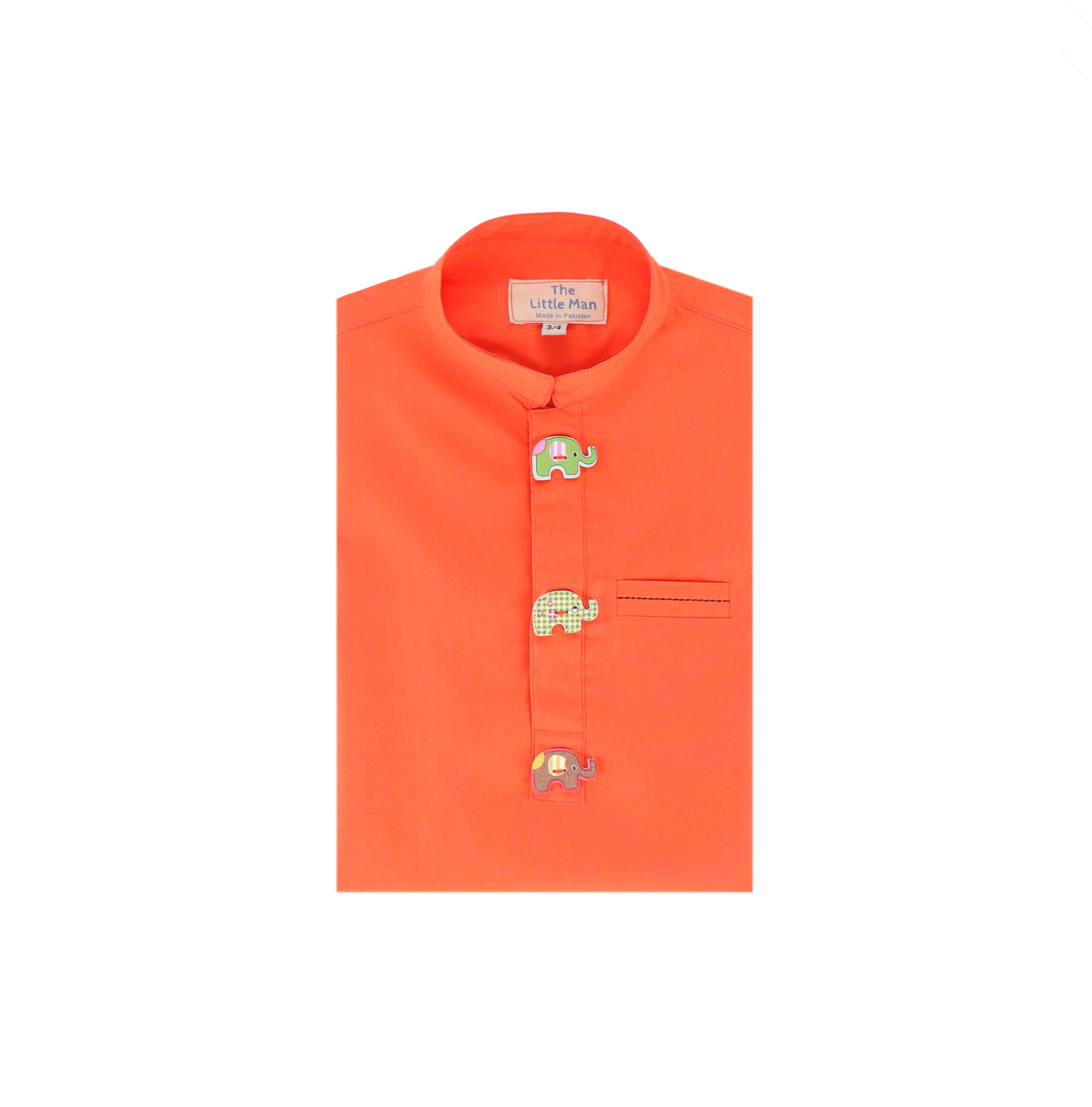 ORANGE COTTON KURTA WITH ELEPHANT BUTTONS