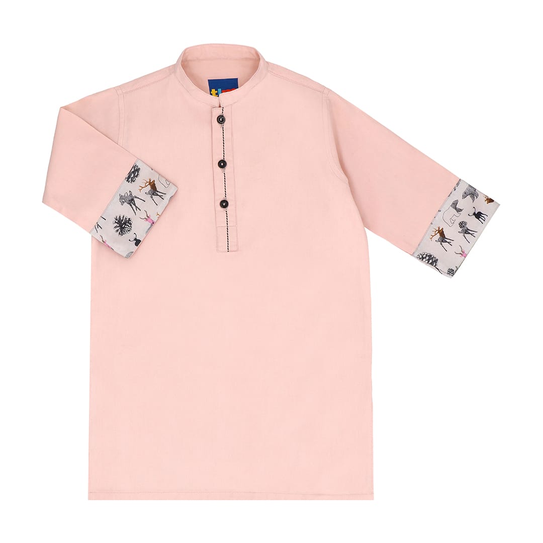 LIGHT PINK COTTON KURTA WIT PRINTED SLEEVES