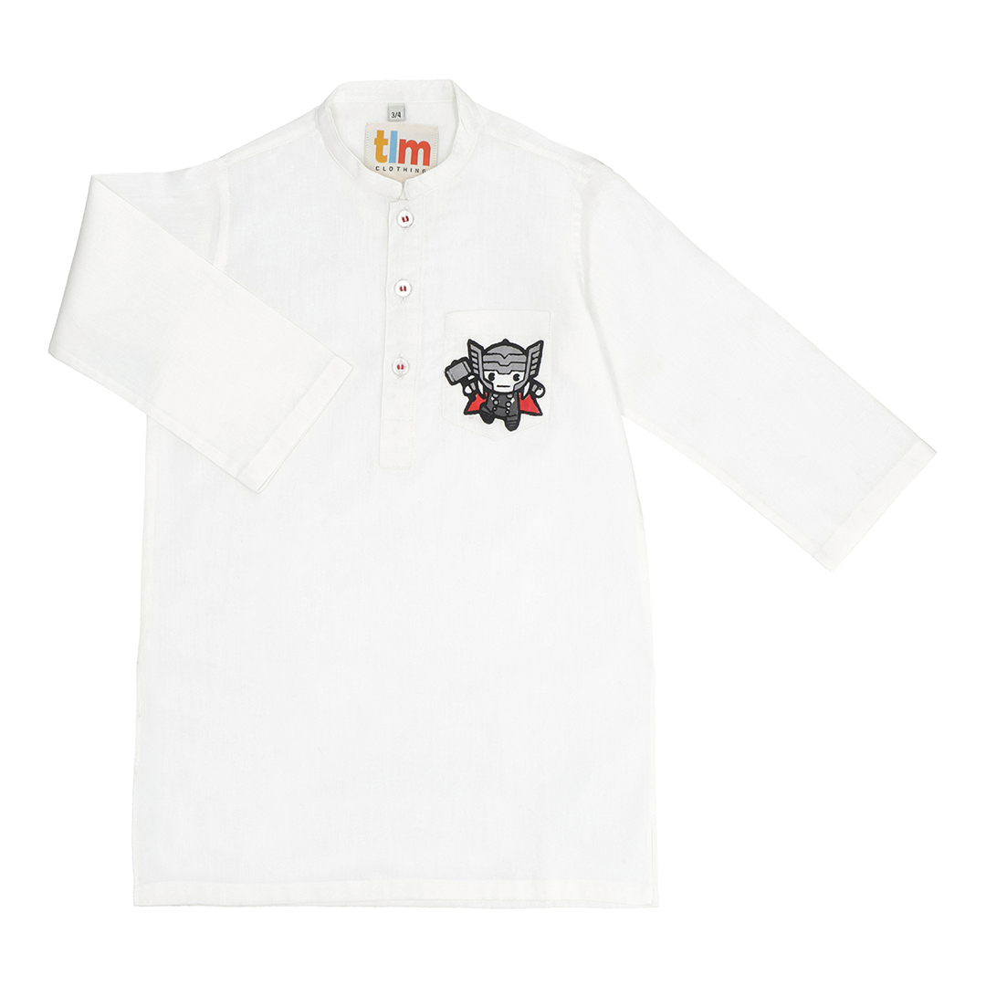 OFF-WHITE COTTON KURTA WITH THOR PRINT